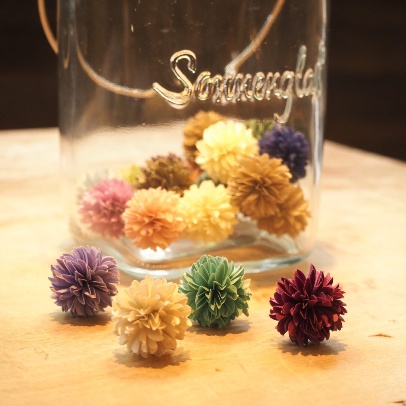 一枚の紙から生まれたお花は、少しずつ違う表情を持っていて、手仕事ならではのぬくもりが感じられます。