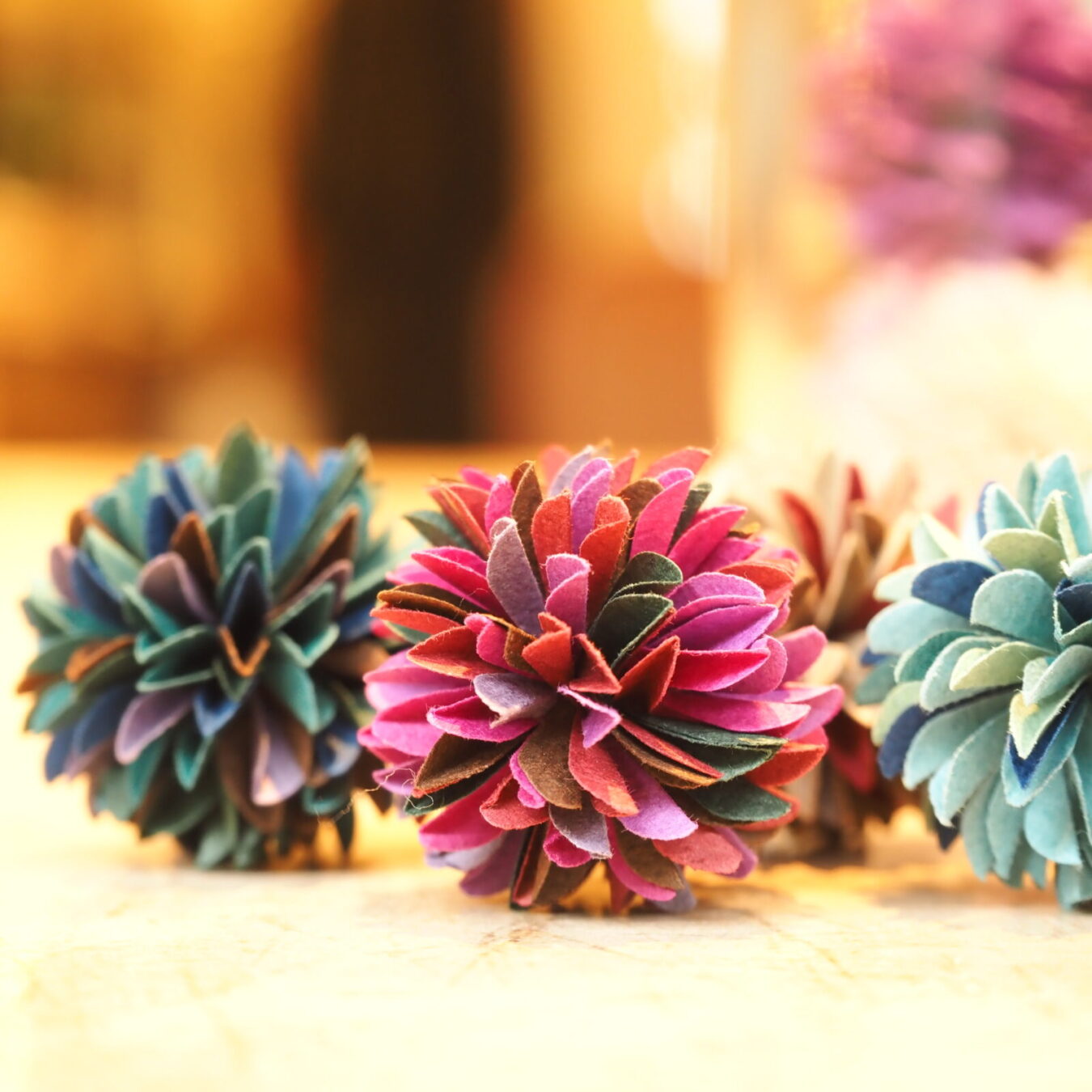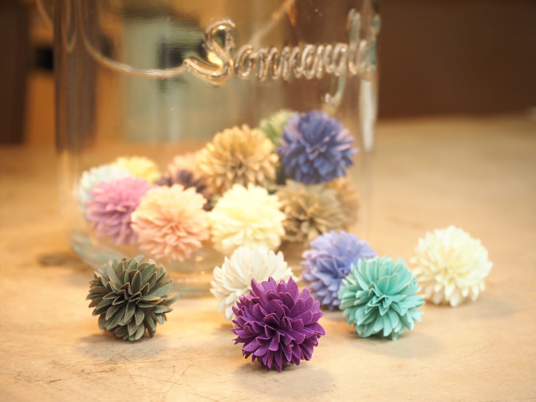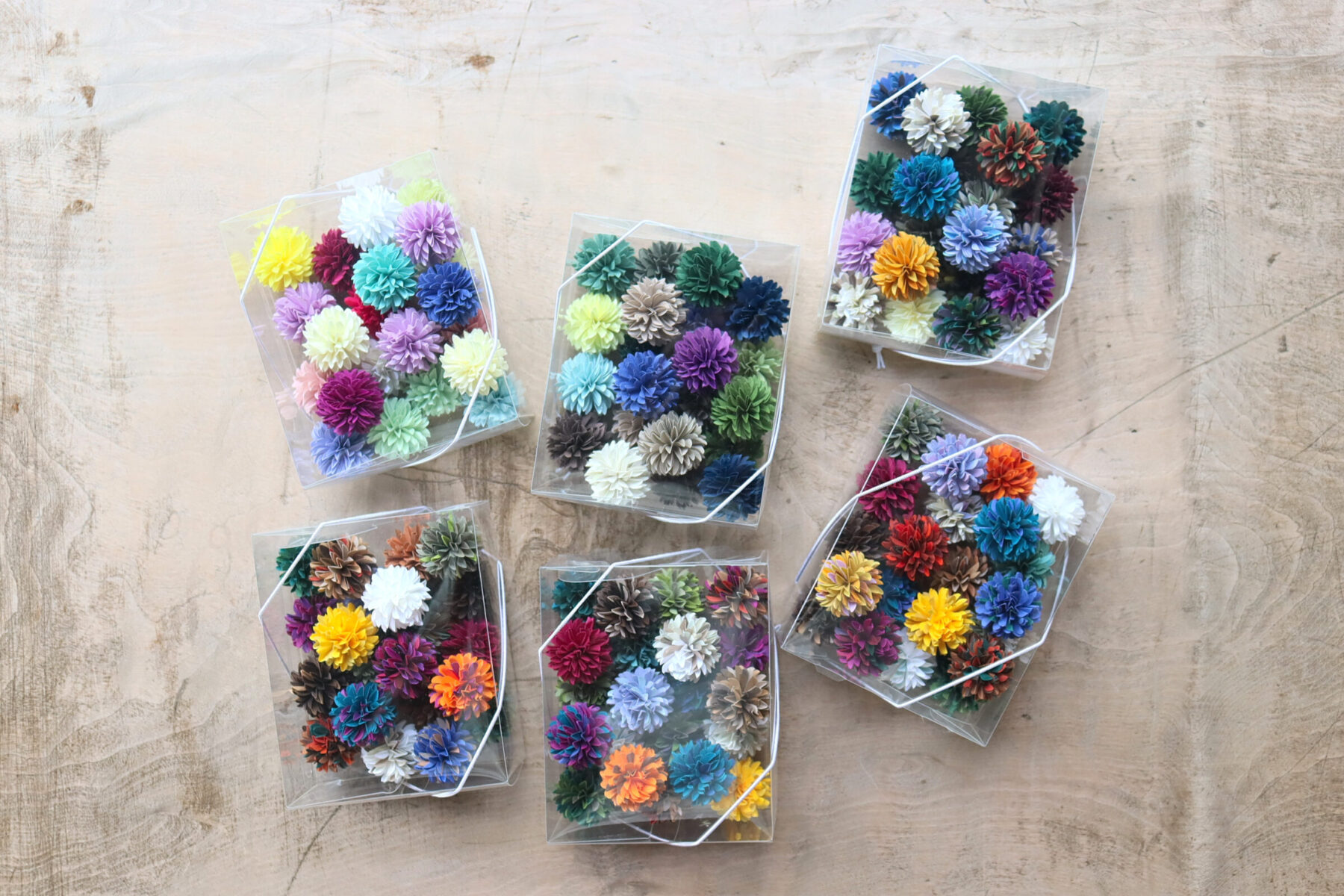 手軽に飾れて、長く楽しめるポンポンフラワー。小瓶やカゴに無造作に入れたり、ガーランドにしても素敵です。