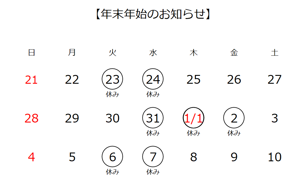 それ以降にいただいたご注文は、1月3日(金)より順次発送させていただきます。
